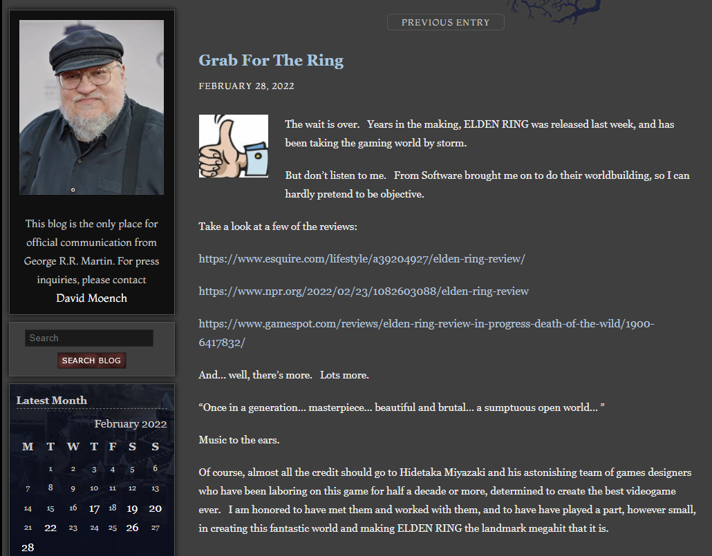 마틴 인터뷰 출처 : https://georgerrmartin.com/notablog/2022/02/28/grab-for-the-ring/ |