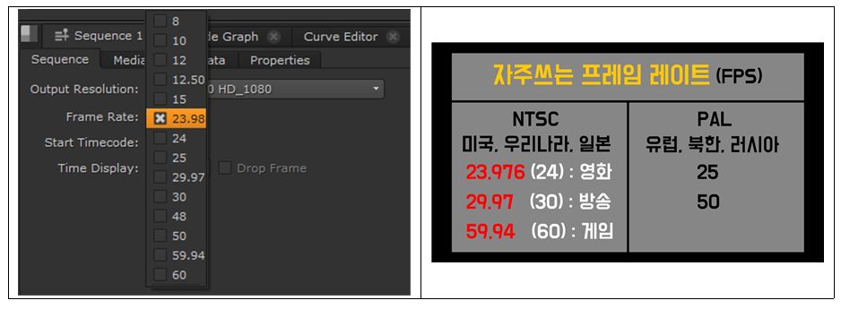 fps의 기준은 상영방식을 기준으로 잡기 때문에, 우리는 (ntsc, pal, 극장 상영용)만 되지 않을까 싶다.