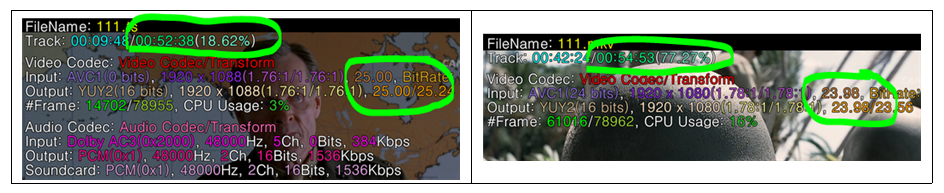 테스트로 동일한 영상을 25 fps에서, 23.976 fps로 인코딩하는 경우