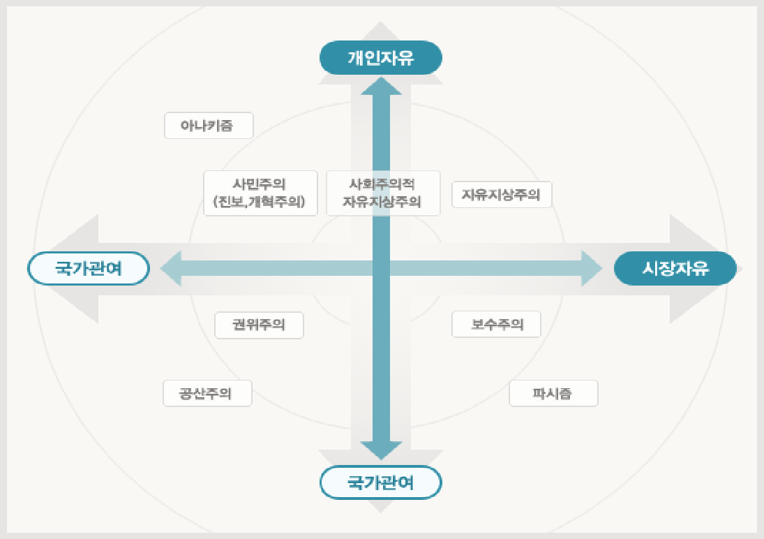 | (사회주의) 사회주의는 경제, 정치적으로 평등하게 조화를 이루는 사회를 지향하는 사상을 의미한다. |