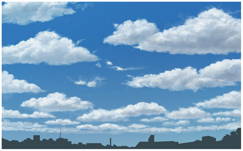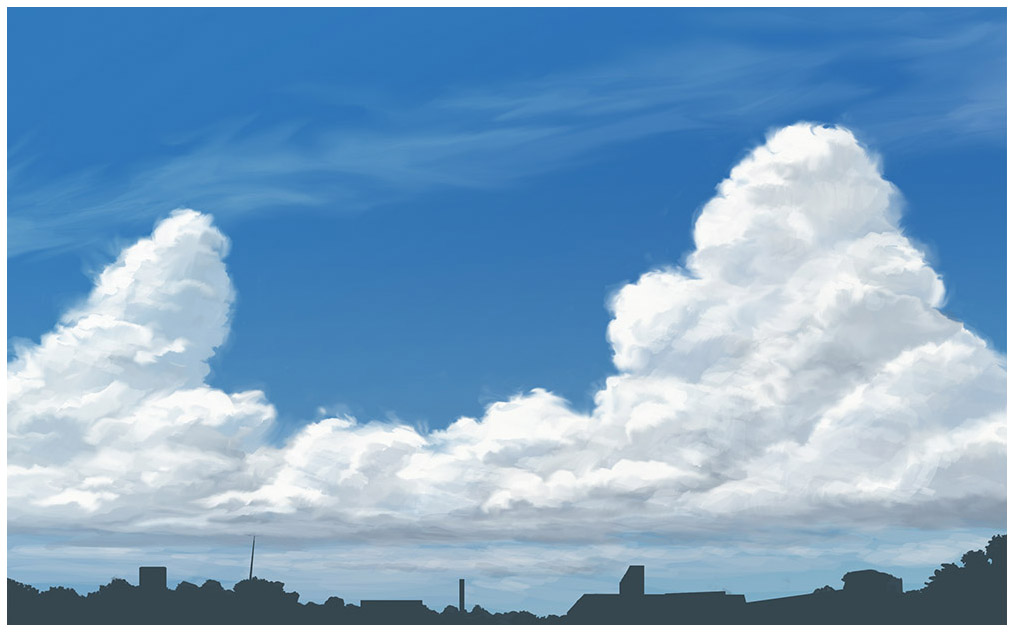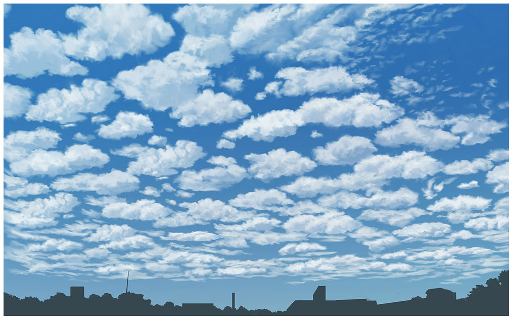 CG로 만든 구름을 움직일 때는 구름은 형상에 따라 고도가 달라지는 것, 고도가 다르면 풍속·풍향이 다르다는 것을 의식하고, 상층구름과 하층구름이 움직이는 방향이나 속도를 바꾸어 보면 설득력이 생겨날 것입니다.