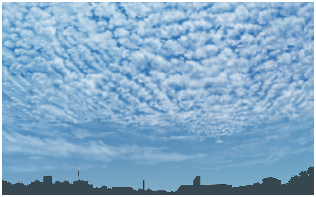 하얗고 작고, 윤곽이 뚜렷한 구름이 모여 무리를 이루고 있는 구름. 얼룩덜룩한 구름이라고도합니다.
