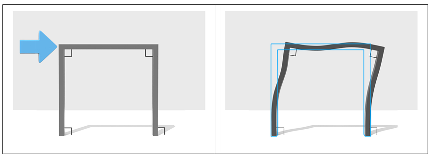 이 구조물에 옆에서 힘이 가해지면 어떻게 변형됩니까?