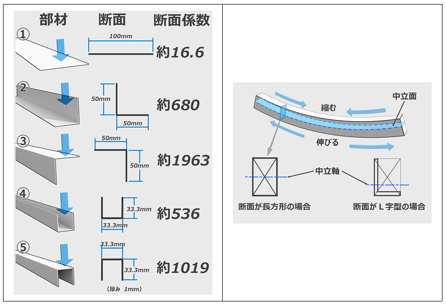 단면 계수를 계산할 수 있게 되면 H강과 L자강의 강도 차 등도 계산하여 알 수 있습니다.