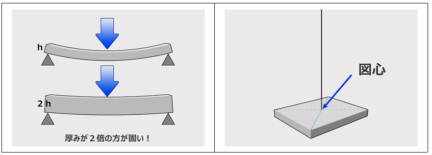 이미지에서는, 그렇게 두꺼운 쪽이 단단하네요.라고 생각합니다만 거기는 「구조 역학」입니다. 얼마나 단단한가를 숫자로 요구하고 싶다! 그러기 위해서는 아래와 같은 순서를 밟아 계산해 갑니다.
