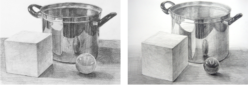 그런데 사진 모사의 경우는 「입체의 것을 평면화해, 정보를 정돈한다」라고 하는 부분까지를 카메라가 처리해 줍니다. 그 결과를 그리기 때문에, 많은 정보를 깨끗이 정리하는 연습을 할 수 없습니다. 대신 이 부분을 날리기 때문에 테크닉을 연습하기에는 적합하다고 할 수 있습니다.