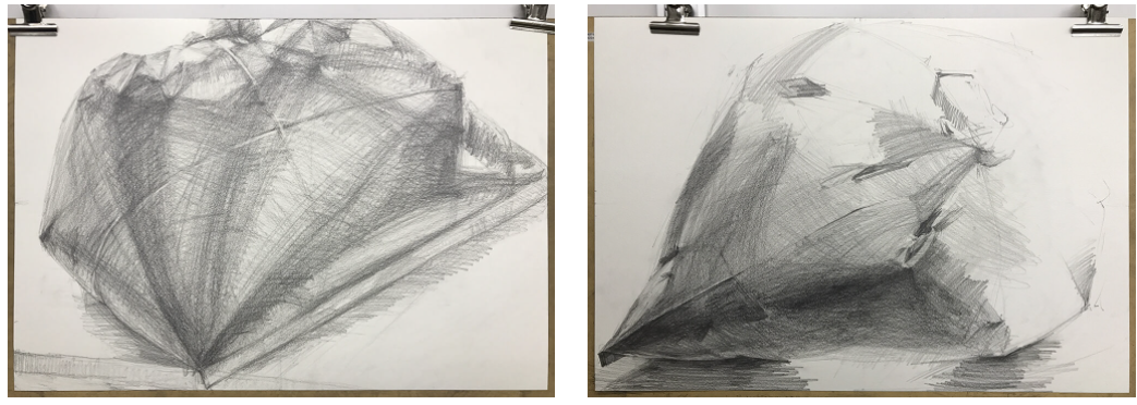 여기에 검은 비닐 봉투를 그린 그려진 그림을 2장 소개합니다. 둘 다 시작부터 3~40분 정도입니다. A와 C를 그리는 방법으로 그려져 있는 것을 알 수 있네요.