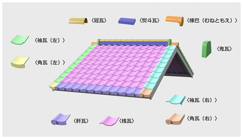 일본에서 기와생산이 시작된 것은 기원 588년에 한반도 백제에서 4명의 기와박사가 승려와 사공들과 함께 파견되어 온 것 같다. 그리고 최초로 건조된 기와사의 건물은 나라현의 호싱지로 596년에 완성되었습니다. 이 호싱지의 기와는, 지금도 모토고지(암고지)의 지붕에 사용되고 있기 때문에, 실제로 볼 수 있습니다.