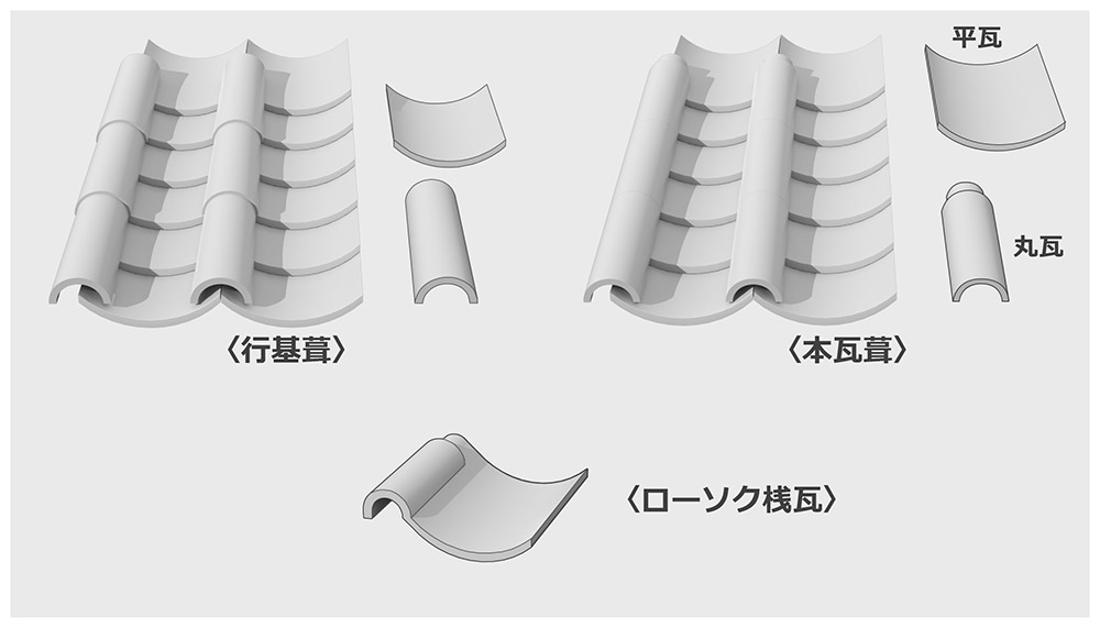 이것은 평와 위가 가늘어져 있는 환와를 교대로 조합 하는 것이었습니다. 그 후, 환와에 단차를 붙여 조합하는 본 기와가 주류가 되었습니다. 에도시대에 니시무라 반베에가, 헤이와와 마와와를 합체시킨 로석 부두(에도 사와·간략 기와)를 발명했습니다. 더욱 개선된 부두 기와는 메이지 시대에 전국에서 사용되게 되었습니다.
