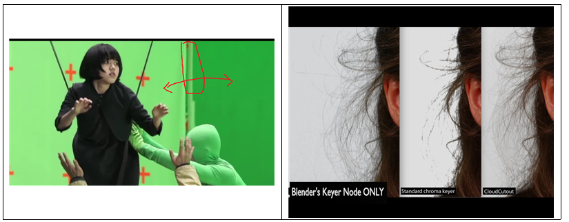 어쩔수 없이, (그린 & 블루) 크로마를 섞어 쓰는 경우, 다른 크로마로 이동하는 순간 keying 작업을 하면 엣지가 튀어 보인다. 엣지를 처리하는 부분에서 작업시간이 굉장히 오래 걸린다.