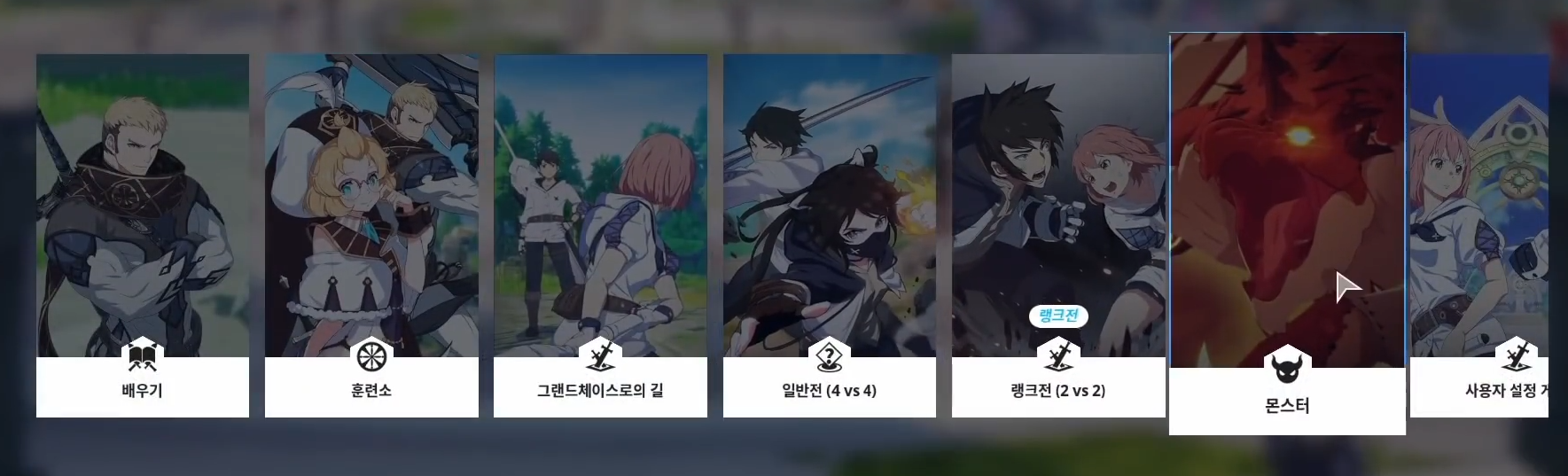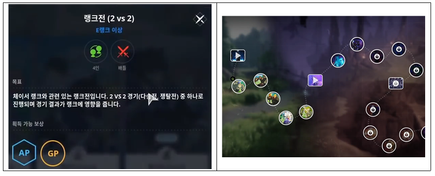 메인 컨텐츠 2가지 < PVP 랭크전 , PVE 몬스터전 >