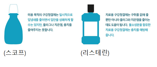 | 스코프 = 세균 죽이는 맛이 좋은 | 리스테린 = 병원 냄새가 느껴지는 효과좋은 |