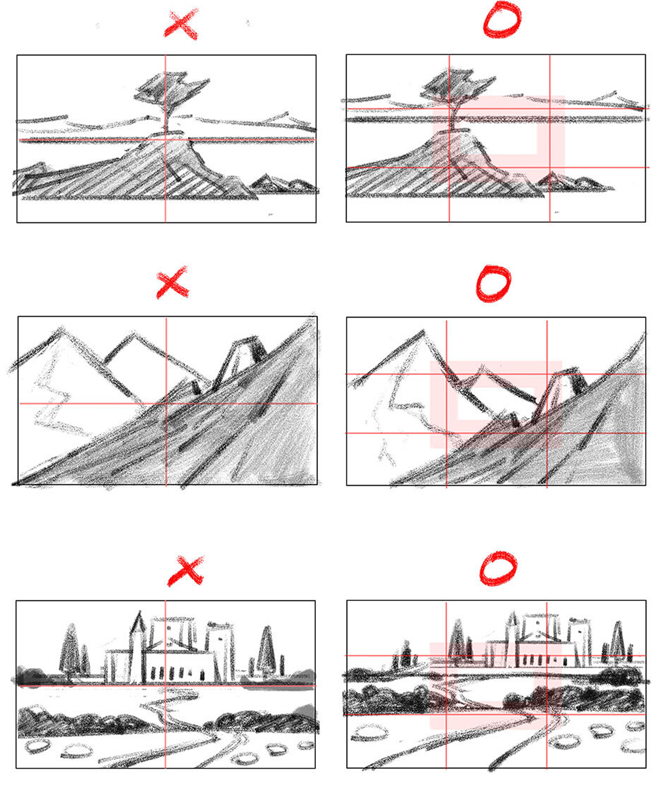 | - 표현하고 싶은 스토리나 감정에 따른 레이아웃으로 보여주고 싶은 것이 분명하다 - 그림의 퍼스펙티브(원근감)가 확실하고 있어 보는 사람의 시점(POV/Point of View)이 명확 - 그림 안에 초점(Focal Point)이 있다. 보는 사람의 시선을 유도하고 궁극적으로는 Focal Point에 도달시킨다 - 계속 보고 싶어지는 역동성이 있다. 보는 사람의 시선을 움직여 그림 속에 흐름을 만든다. |