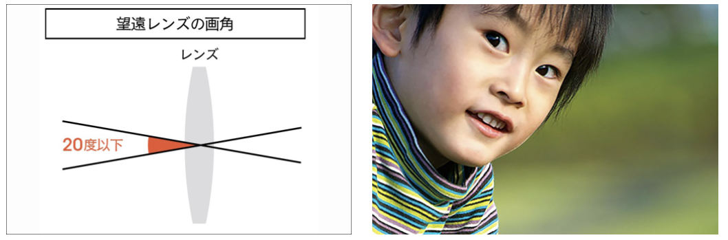 예를 들면, 화각이 좁은 망원 렌즈는, 촬영할 수 있는 범위도 좁다.
