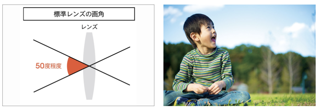 또한, 표준 렌즈의 초점 거리는 50mm 정도로, 화각은 50도 정도가 된다. 「사람이 릴렉스하고 있을 때의 시야에 가깝다고 되어 있어, 일상 풍경의 묘사나, 평화·안심이라고 하는 분위기를 연출하고 싶은 경우에 적합합니다. 동시에, 평범하고 지루한 인상을 주는 효과도 있습니다」