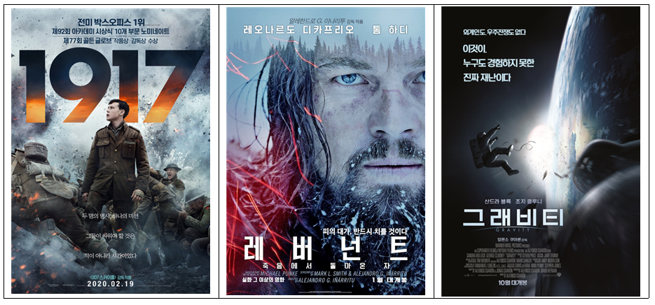 그중에서 가장 인상적인 영화는 (레버런트, 그래비티, 어벤저스, 1917)가 아닐까 합니다.