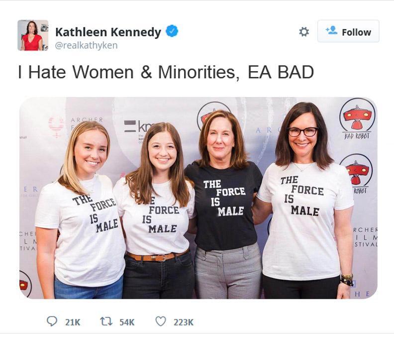 최근 정치적 올바름(?)으로 무장한 철저히 원작의 팬과 관계를 무시한 과도한 PC가 헐리웃을 강타하면서 영화의 순수한 정의와 업계의 분위기가 단순히 돈 먹고 돈 먹기 식의 테마파크 정도의 위치로 추락하게 된다.