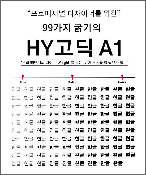 대부분 [굵게, 일반] 으로 표현할 수 있고, 많은 폰트들은 굵고, 얇은 서체를 함께 제공한다.