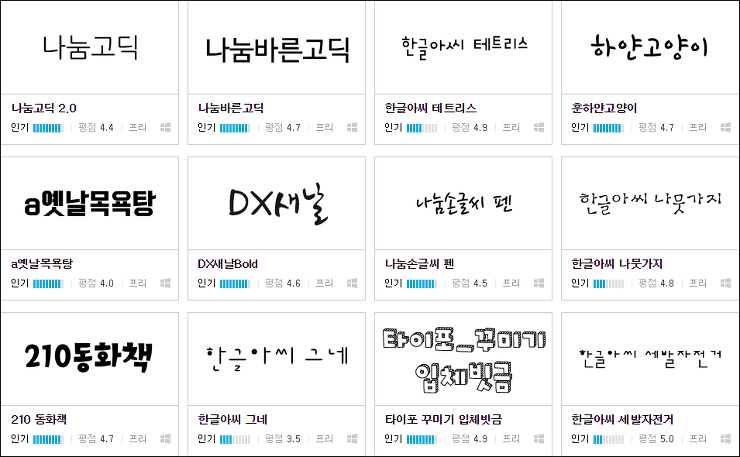 폰트는 매우 많으며, 그것을 쉽게 비교할수 있는 홈페이지들이 많다.