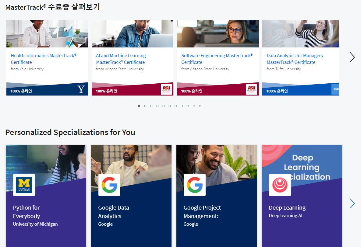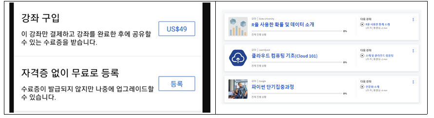 수료증 없이 무료로 강의를 들을 수도 있고, 학위가 필요한 사람은 유료로 전환하면 된다.