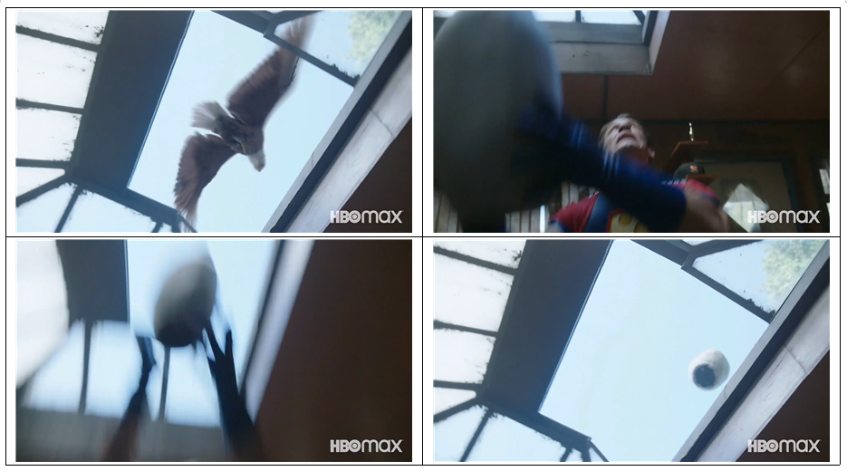 | 무엇이 들어갈지 명확해도 촬영이 불가능한 경우가 많다. 이때, 배우가 실제로 반응하고 연기가 가능하도록, 크로마 형태의 더미가 있으면 좋다. 독수리를 full CG이기 때문에, 촬영때는 독수리의 기본 형태와 크기에 맞는 더미를 사용해 촬영했다. 배우의 연기를 떠나, 촬영을 할때도 피사체의 위치를 알아야 정확히 움직일수 있기 때문에 더미는 활용도가 높은거 같다. |