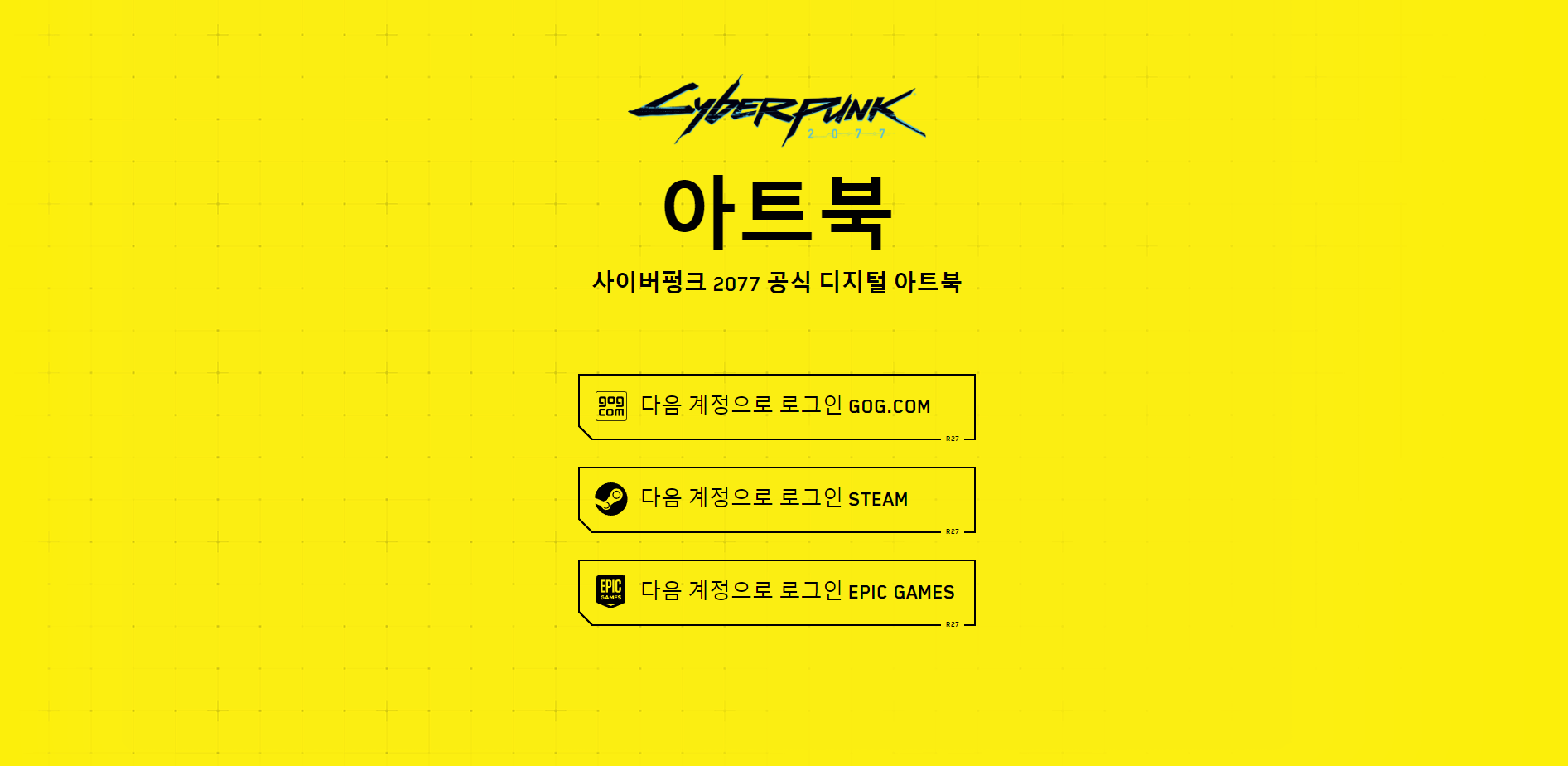 『사이버펑크 2077』 브라우저판 디지털 아트북은, 열람용 URL로부터 계정 연계(GOG.com/Steam/Epic Games)를 실시하는 것으로 브라우 저상에서 열람할 수 있습니다. 가정용 게임기판의 경우, 게임 내 「MY REWARDS」보다 GOG 계정과의 제휴가 필요합니다.
