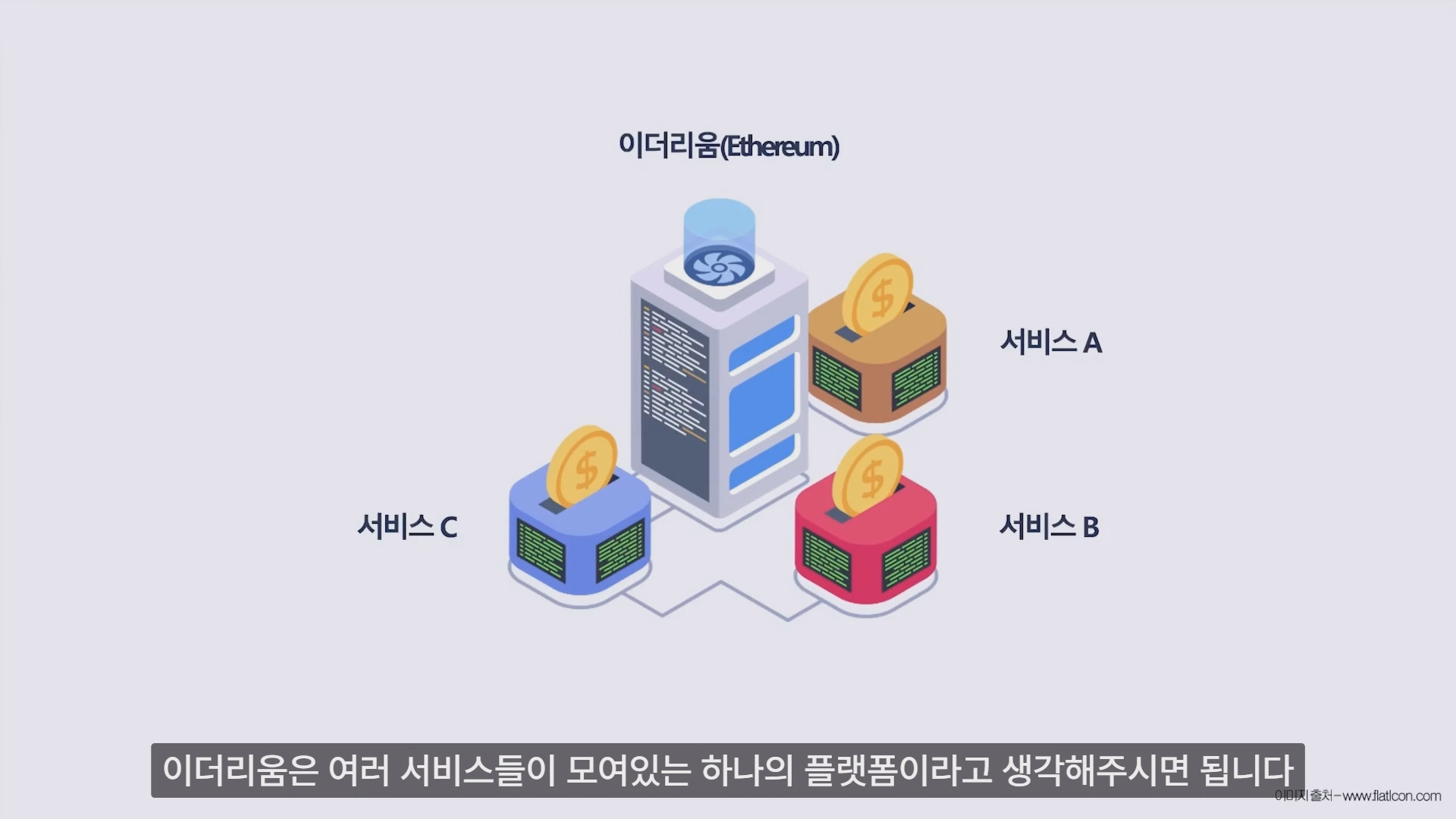 이더리움은 여러 서비스가 모여 있는 하나의 플랫폼으로 여갛ㄹ을 한다.