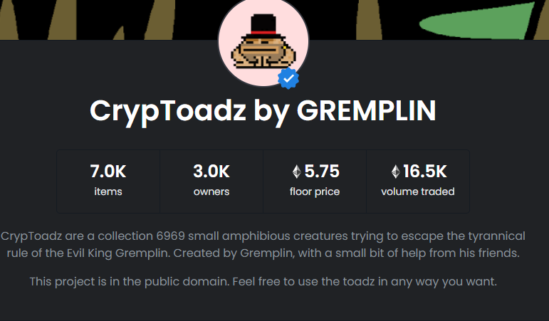 오픈씨 등 2차 거래 시장에서 컬렉션 중 가장 낮은 가격.