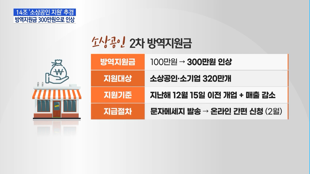 기획 재정부가 14조 원을 편성하는 ‘원포인트’ 소상공인 지원 금을 편성하게 됩니다.