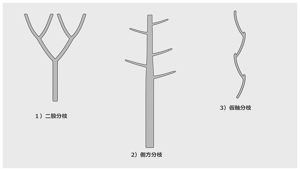 이 분기를 하는 것은 「분지(분시)」라고 합니다. 분지는 뿌리처럼 여러 패턴으로 분류할 수 있습니다.