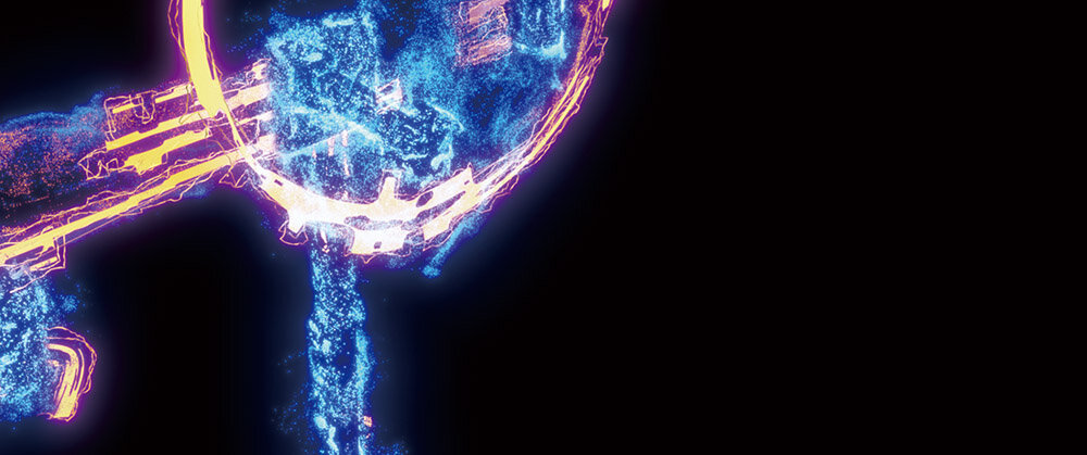 키 에펙트 셀에 Deep Glow를 사용하여 빛을 내보냅니다. 공중에 번지는 파동 모양의 줄 모양 에펙트에는 프랙탈 노이즈로 질감을 추가하고, Particular 및 F's sputteringAlpha로 줄 주변에 흩어지는 입자를 추가합니다.