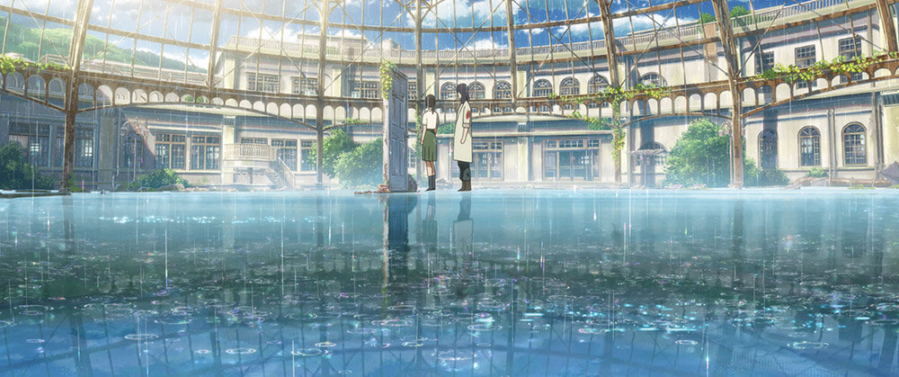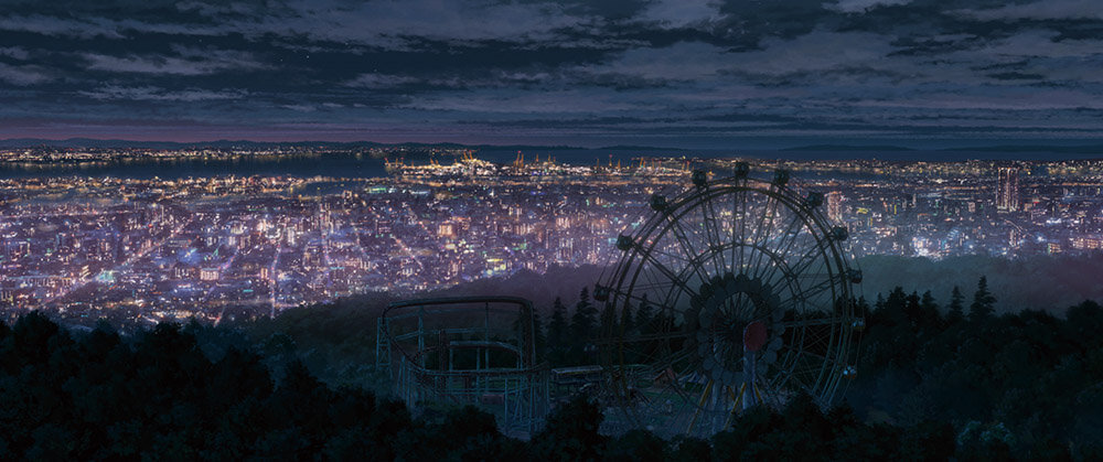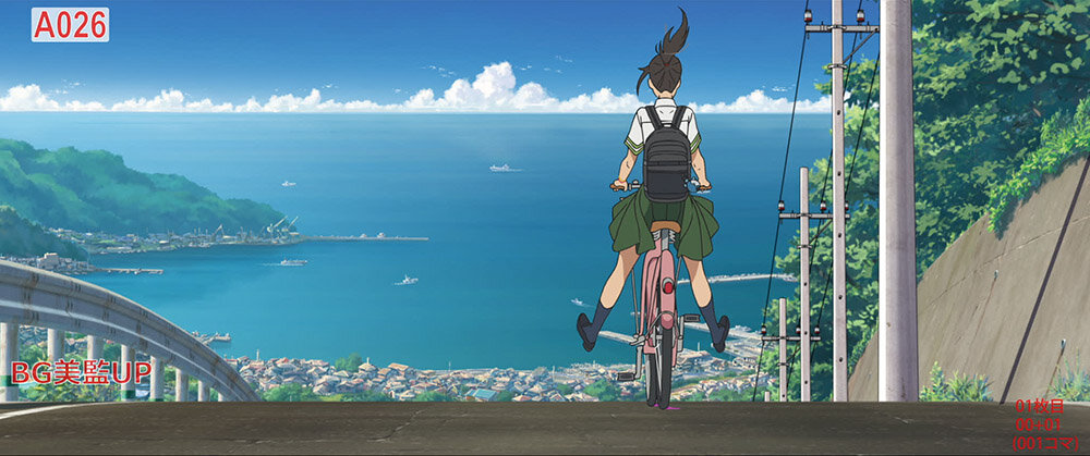 소재의 배치와 연출 등을 극도로 완성시켜내는 독특한 현실감. "촬영 전 초기 소재로도, 보통의 작품에서 충분히 사용 가능한 것이지만, 신카이 감독이 촬영에서 색상을 바꾸면 '맞춘다'는 느낌이 나온다"라고 합니다.