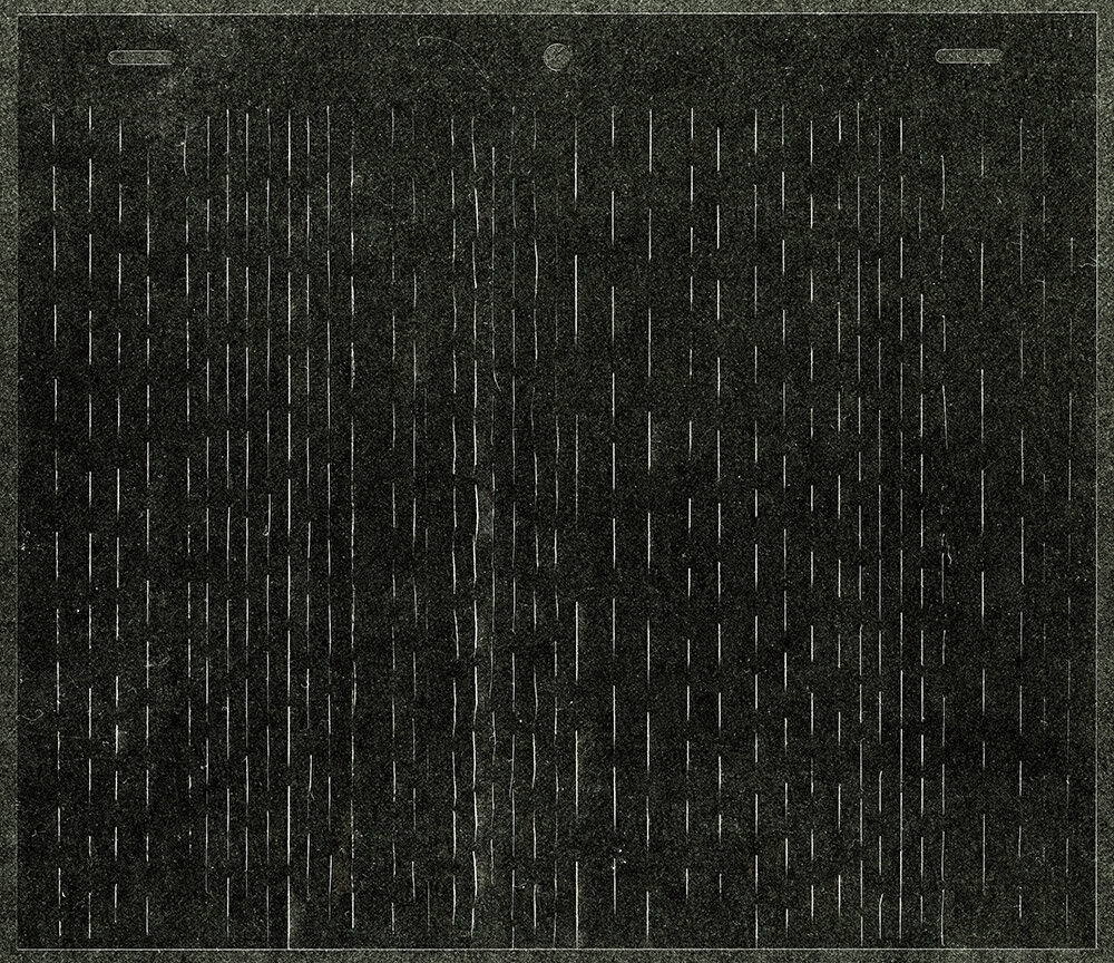 색채 디자이너인 야마모토 토모코 씨의 가르침을 받고, 셀 시트에 연필과 절단기로 자국을 남기고 검은 종이 위에 놓고 스캔하여 비의 크기별로 분리하여 Particular로 비를 내린 것입니다.