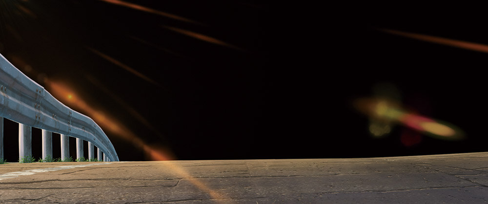 Lenscare의 "Out of Focus"를 사용하여 도로와 산에 초점 깊이 흐림을 추가합니다. 햇빛 반짝임은 프랙털 노이즈로 마스크를 만들고, CC Glass 및 블러(합성) 등을 사용하여 제작되었습니다. 확산을 추가하여 완성되었습니다. 또한 완성된 장면의 왼쪽 아래 도로가 단열재 변형을 사용하여 가열되었습니다.