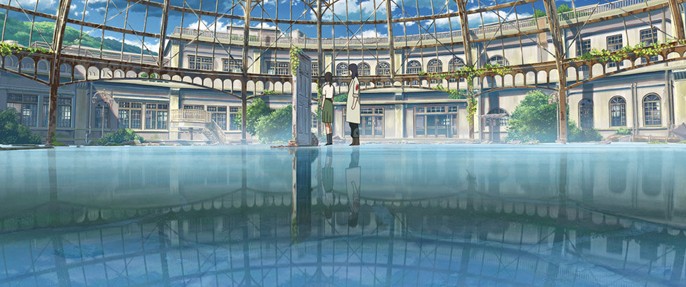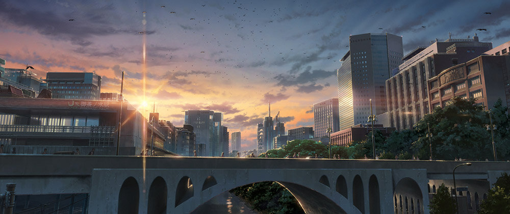 소재의 배치와 연출 등을 극도로 완성시켜내는 독특한 현실감. "촬영 전 초기 소재로도, 보통의 작품에서 충분히 사용 가능한 것이지만, 신카이 감독이 촬영에서 색상을 바꾸면 '맞춘다'는 느낌이 나온다"라고 합니다.