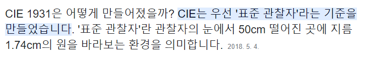 컬러를 최초로 수학 모델로 정립한것이 CIE 1931 모델인데, 이것은 1931년 인간 표본 실험을 통해서 정립되었다.