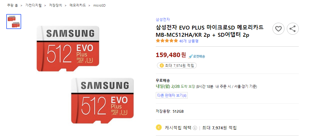 하지만, 용량을 늘리기위해 대부분 512GB의 SD카드를 구입할것이라 예상합니다.