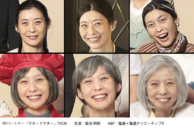 '머니 닥터'의 TV CM에서는 특수 메이크업 없이 '노화'를 실현시켰다.