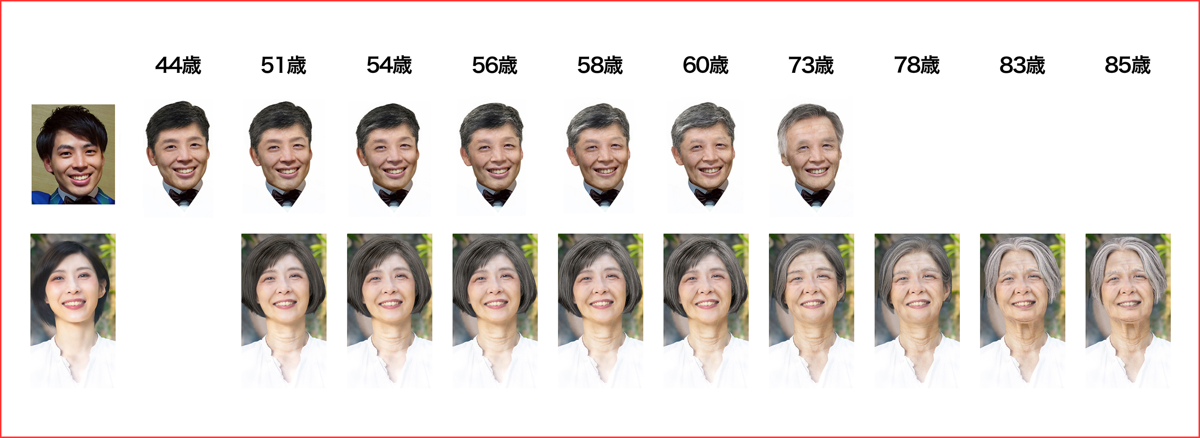 또, 배우의 원래의 얼굴을 「젊어지게 하는」 것으로, 제일 젊은 때와 제일 노화했을 때의 「차」를 크게 하는 방법도 있다.