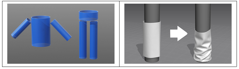그림과 같이 옷과 바지를 간략화해 보면 원통의 조합으로 되어 있는 것을 알 수 있습니다.
