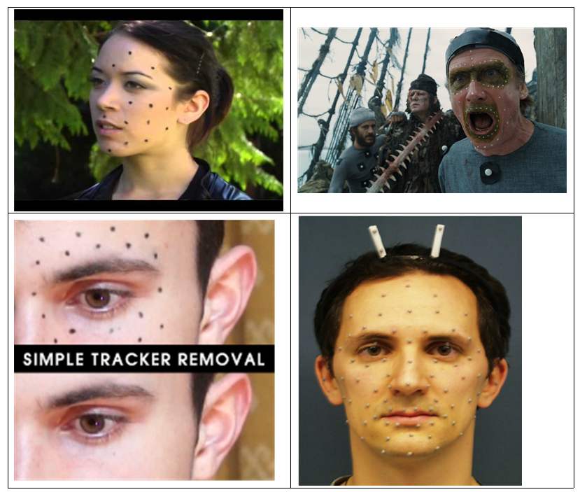 | 얼굴은 포인트 형태의 마커를 사용하는게 좋다. 마커 테이프는 떨어지거나, 너무커서 리무브 하기 힘들다. 마커는 최소로 설치해야 한다. 마스카라를 이용하면, 쉽게 마킹을 할수 있다. 배우의 얼굴에 붓으로 색칠해야 하기 때문에, 분장팀의 사전 동의가 필요한거 같다. 잘못된 마커를 사용하면, 제거가 힘들어 촬영에 문제가 될수 있다. 배우의 얼굴에 마킹을 하는 컷들은 촬영 후반부에 찍는게 좋다고 생각한다. 위쳐에선 얼굴의 핏줄을 추가하기 위해, 얼굴 형태만 트랙킹이 될 정도로 최소로 설치 된거 같다. |