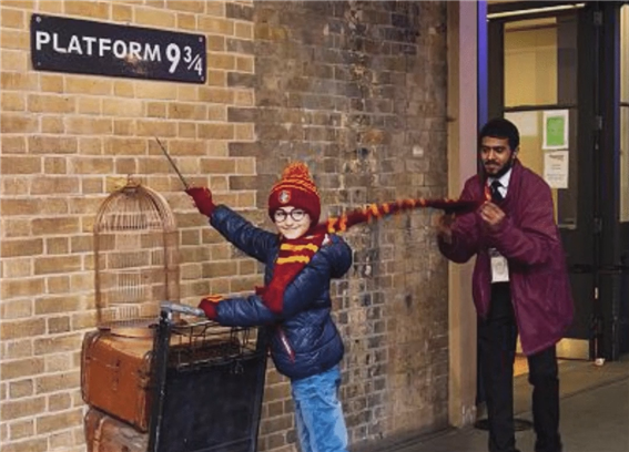 하지만, 기차역의 일반적 플랫폼이 아니라 (9_3/4) 이라는 벽을 입구로 사용합니다.