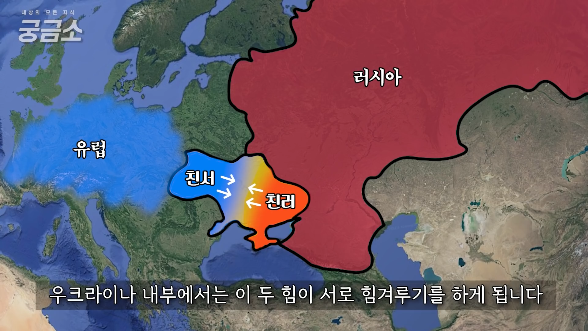 유럽과 러시아 사이에 끼여있으며, 과거 러시아와 같은 뿌리를 두던 우크라이나는 당연히 ’친러, 친서’로 분열되게 됩니다.