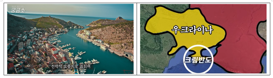 우크라이나 아래 있으며, 흑해와 인접해 있는 크림반도는 겨울에도 항구가 얼지 않아서, 무역의 중심지였습니다. 또한 크림반도는 본래 러시아 영토였습니다.