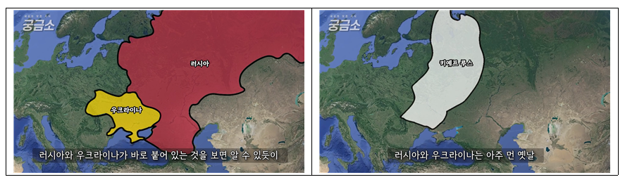 러시아와 우크라이나가 바로 붙어 있으며, 두 나라는 원래 (키예프 루스)라는 하나의 나라에서 시작됩니다.