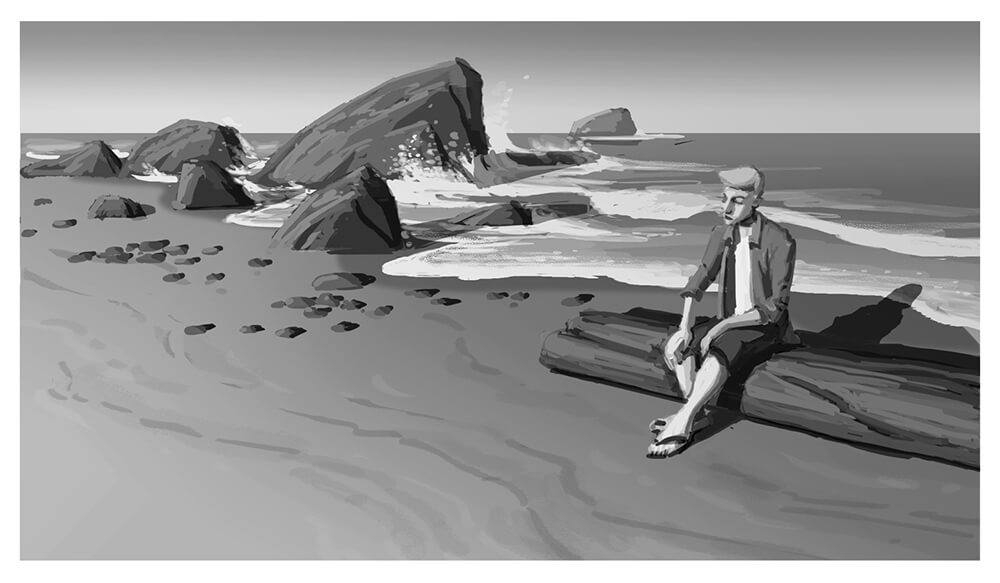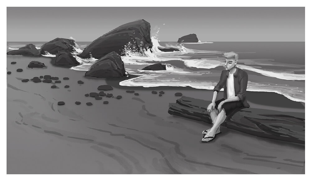 ▲ 해변에 앉아있는 남자를, 우선은 라인만으로 그렸습니다