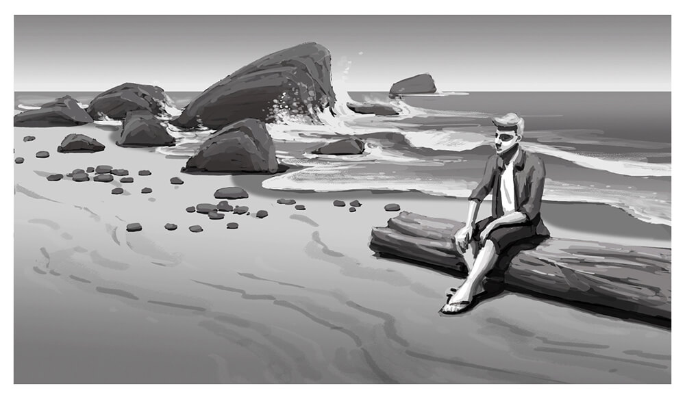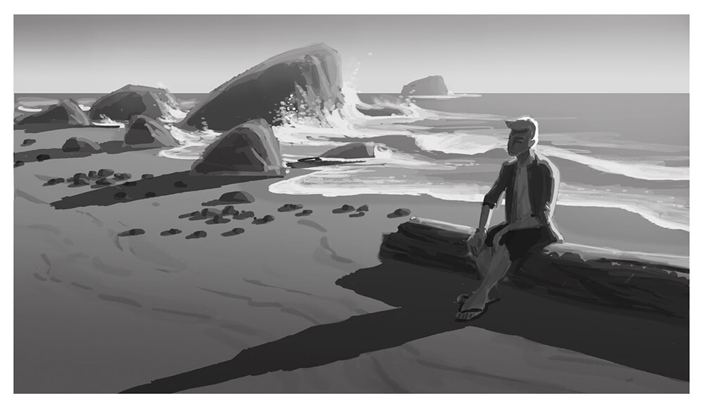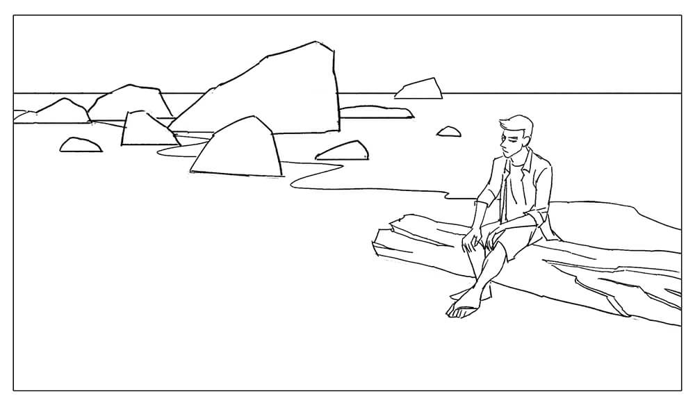 ▲ 해변에 앉아있는 남자를, 우선은 라인만으로 그렸습니다
