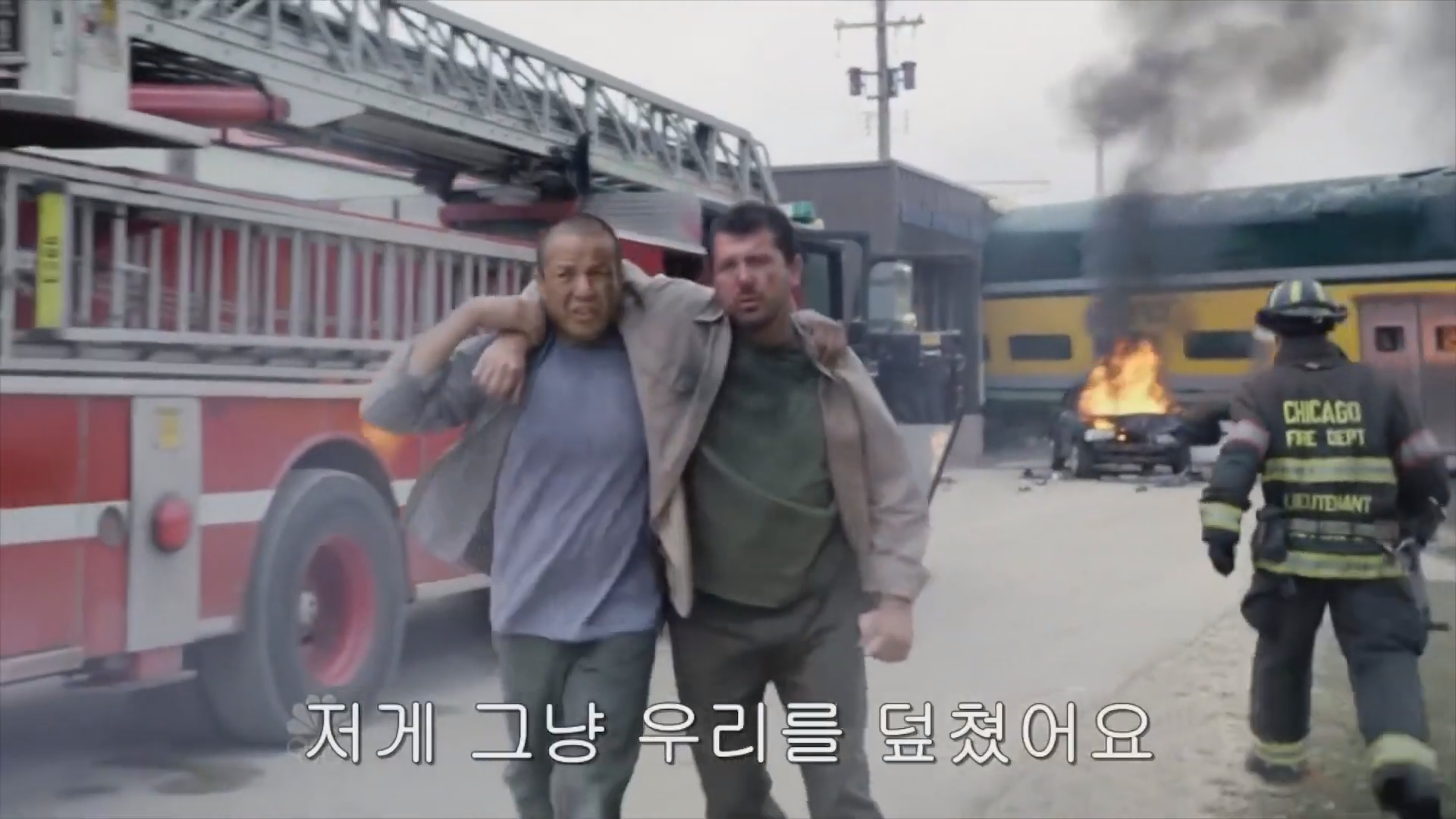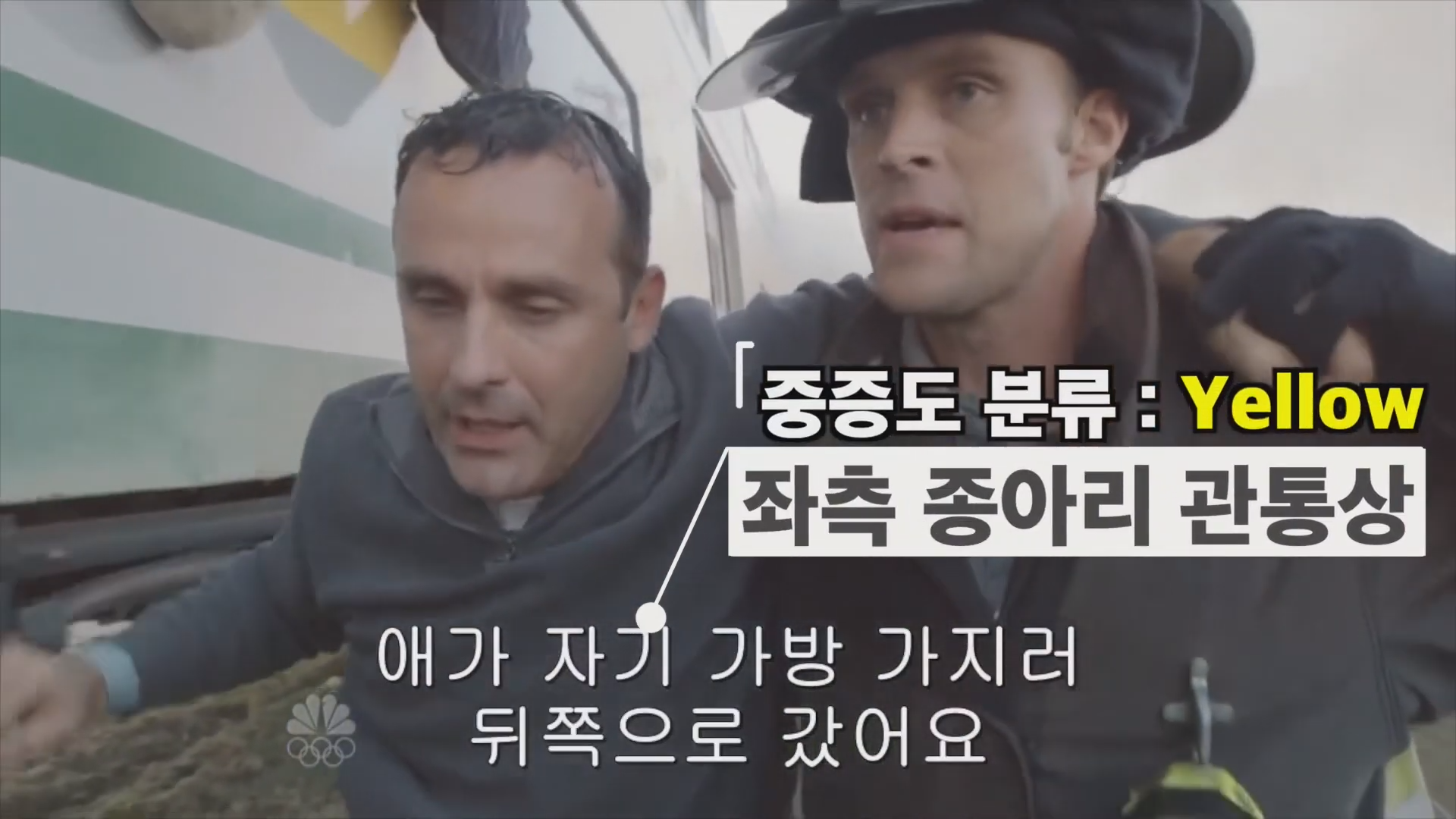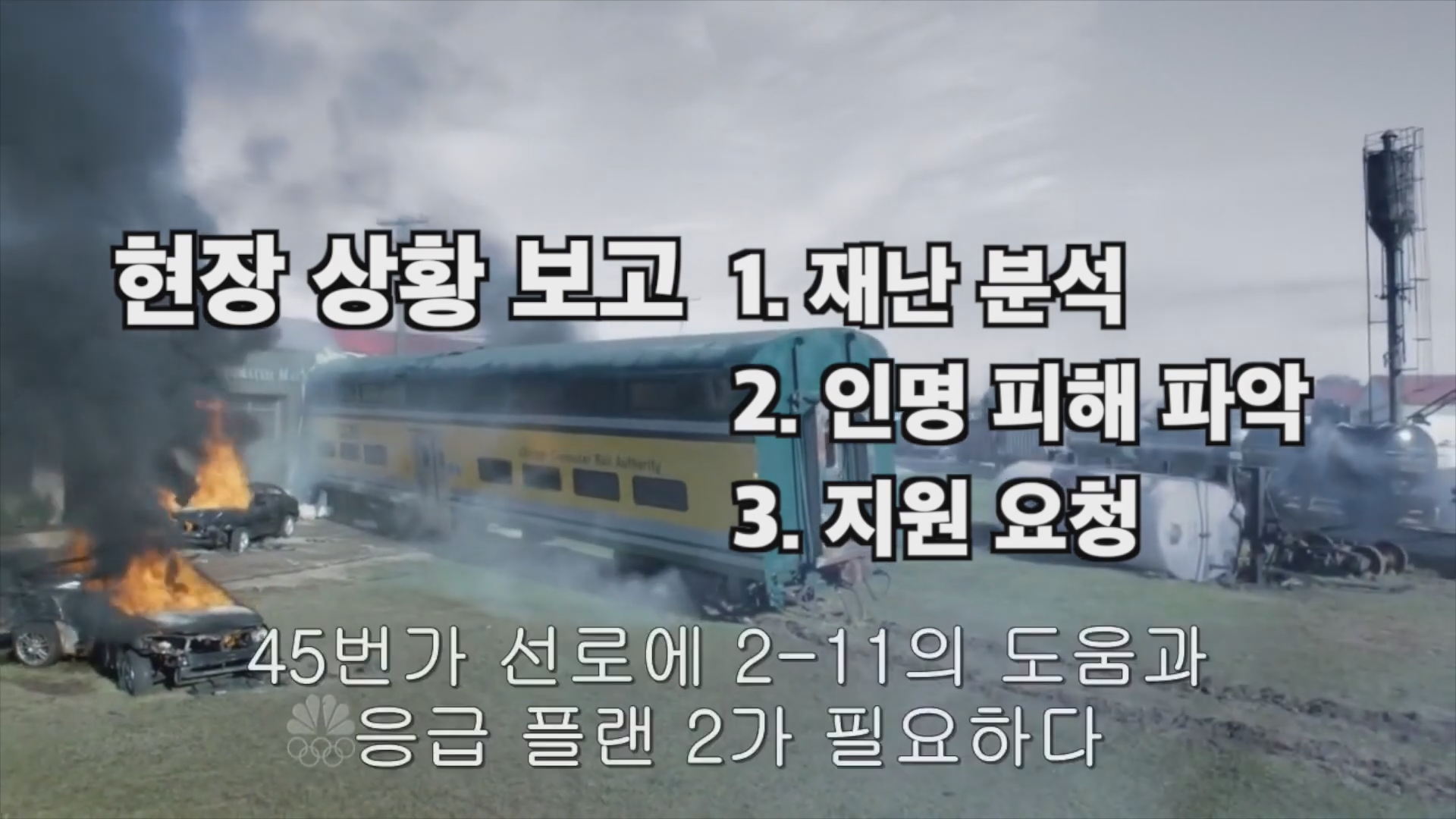 열차와 자동차의 추돌 사고를 가정한 드라마 예시