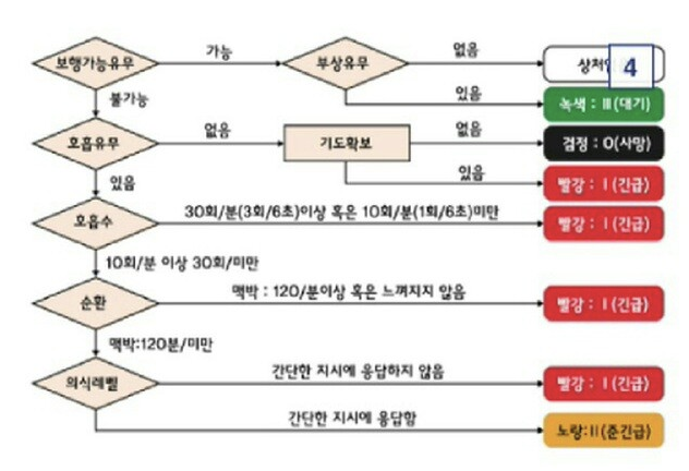 이것을 START triage 분류법으로 구분하게 되어 있다.