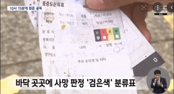 만약, 의사가 생존에 가망이 없다면 <검정>을 부여하고 치료를 포기한다.
